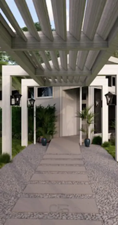 The redesign elevates the home’s arrival experience and creates natural gathering points that are both functional and visually impressive. -
